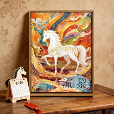 2026春节新年马年数字油画儿童diy填色画纸浆画木框亲子活动新年