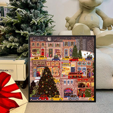 DIY数字油画自己填色城市水桥冬夜之城公园小路雪景人间烟火色
