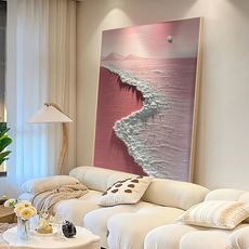 粉色沙滩石英砂丙烯立体肌理画diy手工材料全套数字油画治愈风景