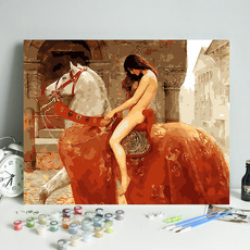 数字油画diy填充马背上的夫人复古名画涂色手工填色油彩画高级感