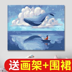 diy数字油画海边手工治愈丙烯画手工填色油彩画客厅挂画装饰画