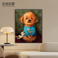 可爱小狗数字油画diy填充填色手工绘治愈系泰迪丙烯油彩画装饰画
