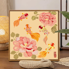 国风锦鲤金鱼数字油画diy填充填色手工绘年年有鱼中式丙烯装饰画