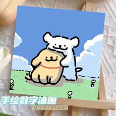 数字油画diy狗狗多巴胺装饰房间手工填色高颜值解压治愈装饰画