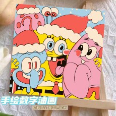 爆款海绵宝宝diy数字油画手工派大星丙烯油彩画可挂墙治愈装饰画