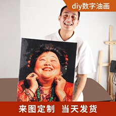 ins韩系全家福数字油画diy填充手绘丙烯填色手工涂色定制卡通装饰