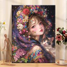 喵与公主-diy数字油画手绘丙烯画手工填充公主与猫治愈油彩涂色画