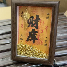 开财补库相框摆件招财小元宝黄财神爷聚宝盆钱到家金钥匙发财摆台