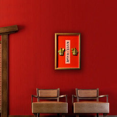 正品中式护哈宅哼二将对件我生财摆相框办公门室客厅入户玄关口装