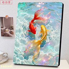 红金双鱼戏水相框高颜值精致治愈国潮招财锦鲤摆件商铺前台装饰
