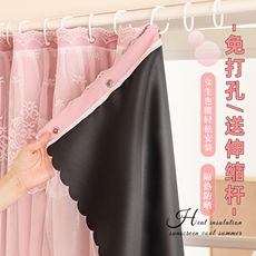 遮光布窗帘 隔热防晒遮阳 卧室阳台飘窗免打孔全遮光避光帘成品