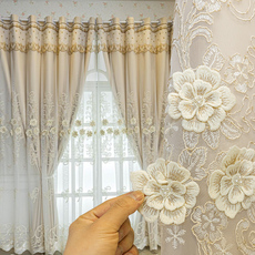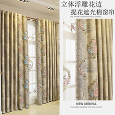 欧式窗帘遮光北欧风简约卧室客厅加厚雪尼尔绣花窗帘成品高档大气