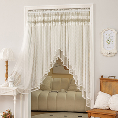 免打孔穿杆挂帘网红门帘卧室厨房隔断半帘镂空蕾丝装饰成品小窗帘