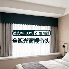 定制全遮光窗帘帘头成品窗幔头款式自粘魔术贴免安装顶上漏光帘头