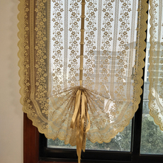田园半遮光半帘门帘蕾丝成品帘隔断半截窗帘小窗帘免打孔安装双层