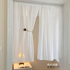 简易安装窗帘透光不透人纱帘短款窗纱阳台飘窗成品白纱遮阳隔断帘