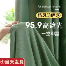 窗帘遮光卧室纯色现代简约客厅防晒隔热挂钩式成品遮阳布挡避光全