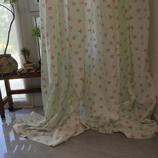 田园透光白纱简易免打孔窗帘成品魔术贴飘窗窗纱纱帘卧室阳台门帘