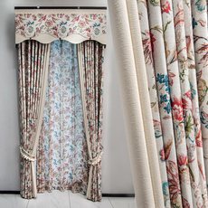 美式田园现代简约加厚棉麻印花窗帘2022年新款客厅卧室飘窗成品帘