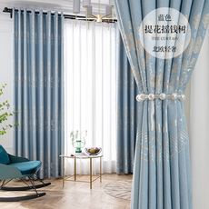 新中式高精密全遮光客厅成品定制窗帘绣花金丝雀卧室飘窗高遮阳布