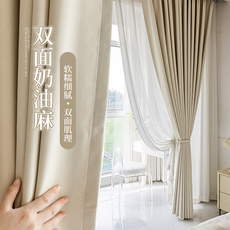 双面奶油麻高遮光窗帘订制简约奶油风大气客厅卧室遮阳加高3.1米