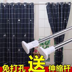 送伸缩杆窗帘免打孔安装遮光宿舍卧室学生飘窗门帘简易出租房成品