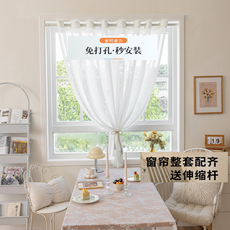 成品白纱帘窗帘免打孔安装金刚纱半透送伸缩杆卧室阳台遮阳帘隔断
