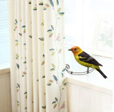 棉麻亚麻小清新卧室窗帘布料成品飘窗田园落地窗纱帘简约现代小鸟