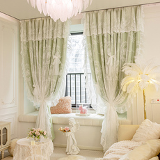 美式田园窗帘韩式透光紫粉色蕾丝成品窗帘窗纱床幔门帘阳台飘窗帘