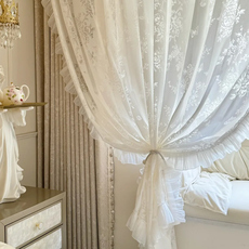 法式飘窗帘卧室阳台浪漫帘子免打孔隔断帘波浪边公主帘田园风窗帘