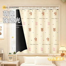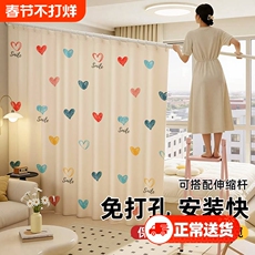 免打孔儿童房伸缩杆窗帘一整套卧室遮挡帘隔断帘飘窗防晒遮光厨房