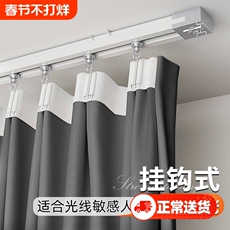 挂钩式遮光窗帘免打孔粘贴轨道一整套2025新款卧室飘窗短帘蕾丝纱