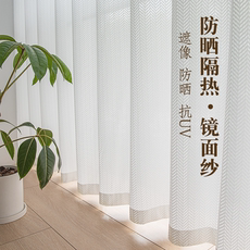窗帘纱帘防晒隔热透光不透人遮光阳台镜面遮阳薄白挂钩飘窗紫外线