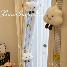 现代地中海英伦风棉麻儿童房卧室飘窗短帘卡通男孩小熊遮光窗帘