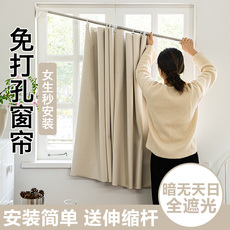 卧室窗帘免打孔伸缩杆一整套安装全遮光2026年新款客厅飘窗遮阳布