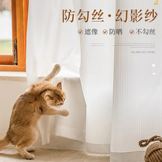 简约新款防刮幻影纱窗帘纱帘透光不透人阳台客厅白色窗纱飘窗白纱