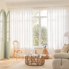 阳台透光不透人防勾丝免打孔窗帘纱帘白纱梦幻卧室飘窗客厅隔断