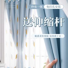 窗帘免打孔安装送伸缩杆一整套卧室女孩房间双层带纱公主风梦幻帘