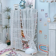 图书馆书架衣帽间遮丑隔断帘大厅白纱窗帘点缀樱桃装饰花朵窗帘