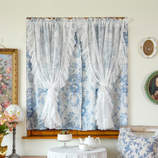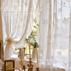 法式轻奢窗帘荷叶边梦幻飘窗蕾丝纱帘门帘隔断帘卧室免打孔装饰帘