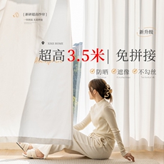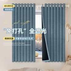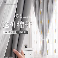 窗帘窗帘杆一整台伸缩杆全套免打孔安装卧室遮光飘窗双层带纱新款
