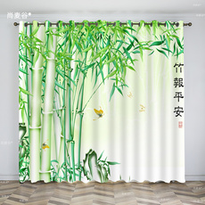新款发财树棉麻质感半遮光挂钩打孔韩折阳台客厅卧室定制窗纱窗帘