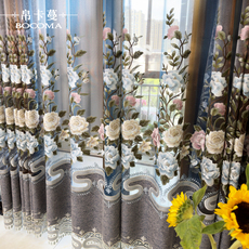新款美式田园中式别墅客厅阳台绣花窗帘刺绣窗纱成品定制落地窗