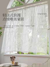 打孔窗帘透光不透人纱帘帘法式白色蕾丝客厅阳台飘窗门帘短隔断窗