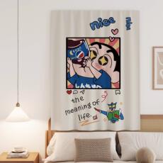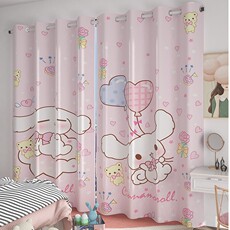 卡通窗帘遮光玉桂狗图案儿童房女孩卧室少女粉色公主风免打孔短帘