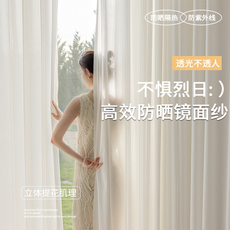白色纱帘透光不透人镜面纱窗帘客厅夏季阳台遮阳防晒隔热2025新款