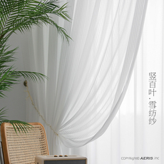 窗帘免打孔安装网红竖百叶纱帘透光不透人卧室飘窗白纱带杆一整套