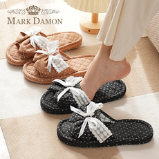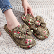 新款布艺居家韩系软布底蝴蝶结女三层布底静音无声家居室内拖鞋