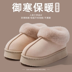 厚底加绒雪地靴女士冬季包跟保暖外穿防滑防风东北棉拖鞋多规格