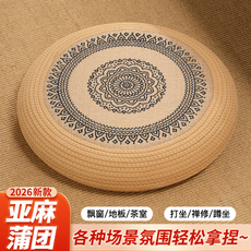 亚麻坐垫可拆洗榻榻米飘窗加厚蒲团坐垫地板坐墩茶道圆形布艺垫子